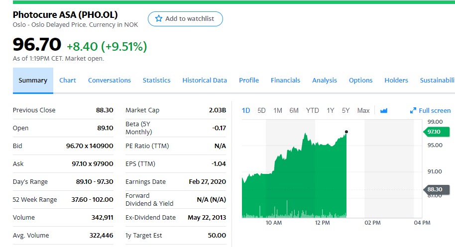 geil geil geil...Zu 8,79€ ordentlich nachgekauft. Danke liebe Käufer des Aktienreports! And for my friends in Norway I will say thank you for your shares! In my hometown we say dank u ! Huup photocure huup !