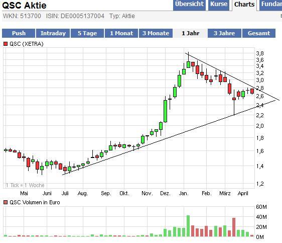 Vor allem in den Autowerten steckt noch viel Kohle. Bin mir ziemlich sicher dass da noch einiges in den Telkosektor fließt, wovon dann hoffentlich auch QSC profitieren kann. Kurzfristig sagt die Charttechnik vielleicht was anderes, mittelfristig sollte es hier aber kursmäßig nach oben gehen.