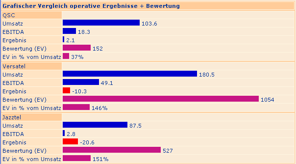 Wenn man diese Bewertungsmultiplen bei anderen Telekomdienstleistern als QSC-Aktionär so sieht, steht einem das Wasser in den Augen. Es ist einfach nicht mehr nachzuvollziehen!