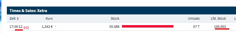 mit 6107 Stück bis 1,342 im Kauf wurden eben 50.088 Stück verkauft, trotzdem steht der Kurs nicht tiefer. Das ist ein automatischer Vorgang, der den besten Preis ermittelt. Irdrgendwer hatte halt das Bedürfnis zu verkaufen.