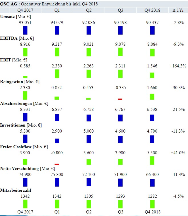 Zitat :QSC wächst 2018 dank starkem Cloud- und Telekommunikationsgeschäft
