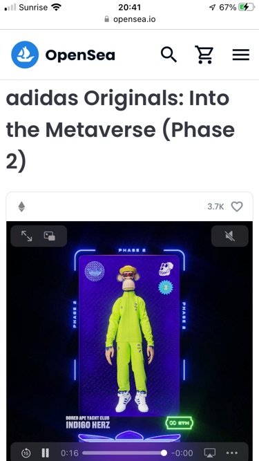 viele Invests zu riskant, den Adidas NFT habe ich im Auge, 0,44 Ether (500 Dollers) da geht noch was,