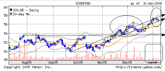 Schering Es sollte nicht mehr weiter runter gehen, die Unterstütz­ung sollte als massiv angesehen werden, da Überkreuzu­ng. Tendiere auf erneuten Versuch bei 58 €!