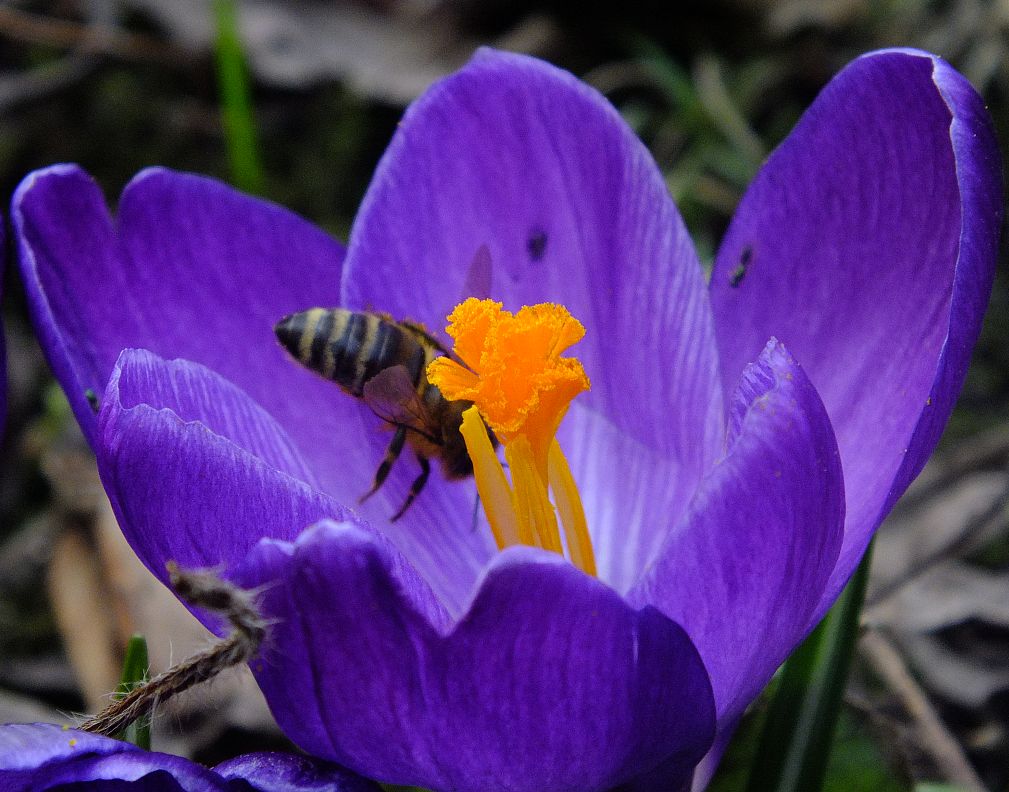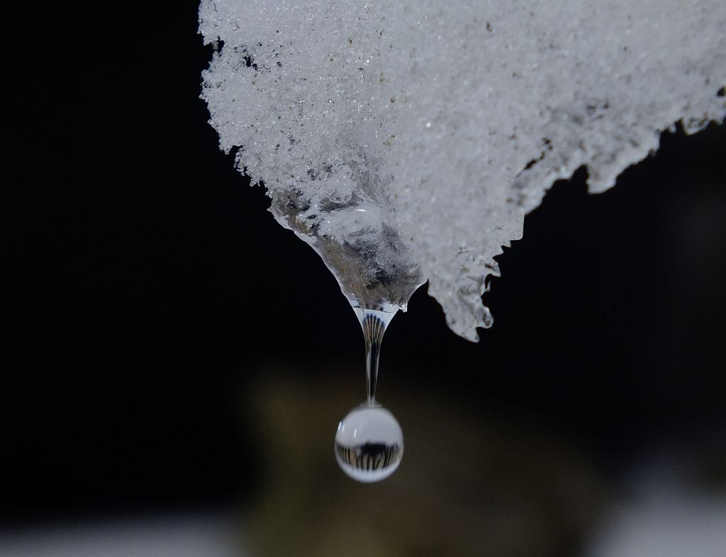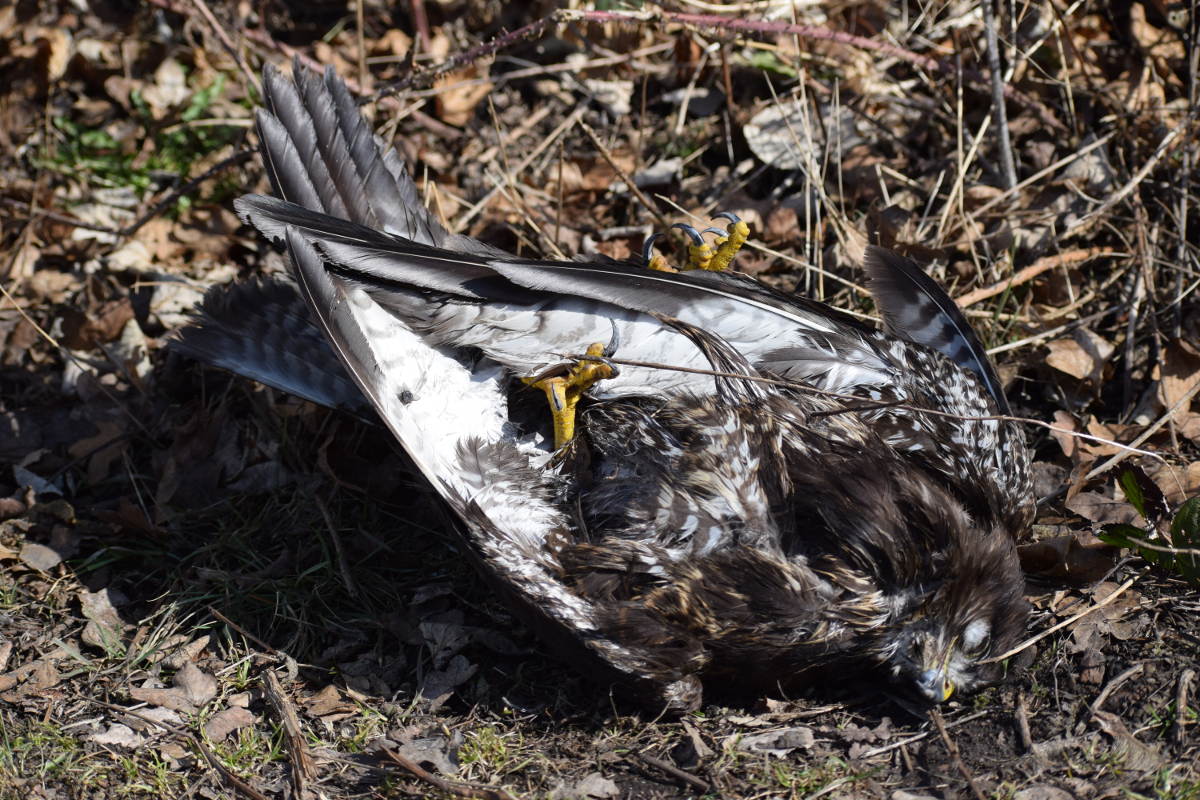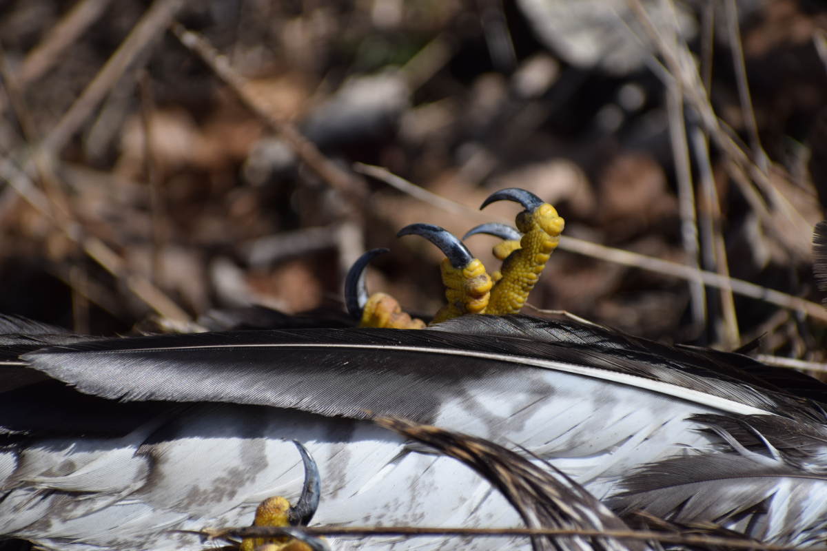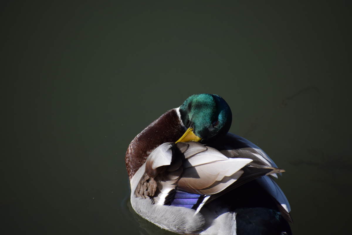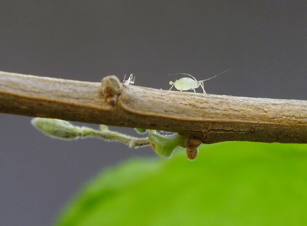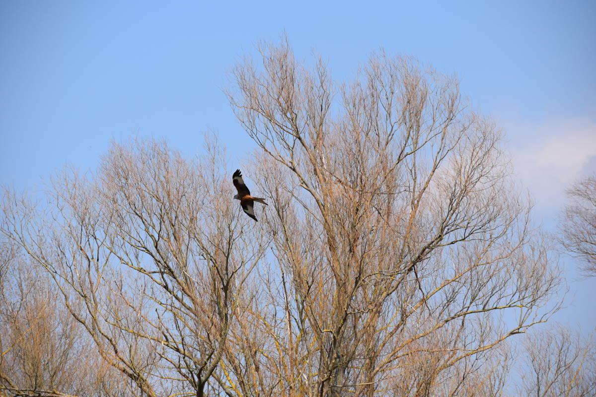 aber appart, wie er sich unter den Zweig hockt...