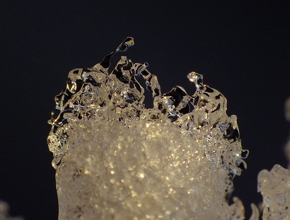 gesehen. Auf einer Eisnadel lag eine Schneeflocke quer. Doch bevor ich die Knipse in der Hand hatte, fiel die Flocke von der Eisnadel. Ob ich das dann aber so eingefangen hätte, ist eine ander Frage.