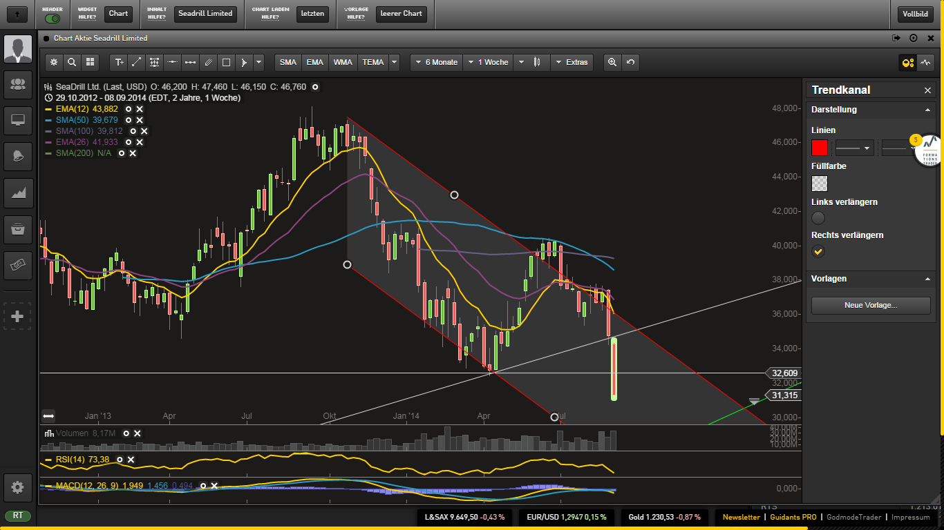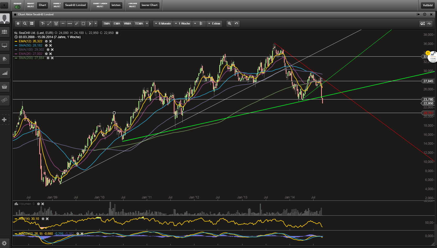 Sofern die Charterraten in 18-24 Monaten nicht wieder anziehen sollten, dürfte Seadrill jedoch seine Dividendenpolitik nicht in der bisherigen Form weiterführen können. Dann könnten wir hier noch einmal deutlich niedrigere Kurse sehen.