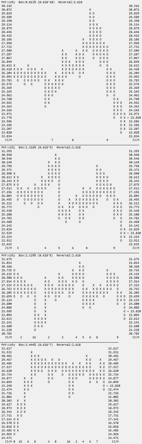 Short-Squeeze möglich: COTY Die Aufnahme in den SPX und das hohe Short-Rati­o sind derzeit ein guter Kaufgrund.­ Die möglichen Kaufsignal­e im P&F liegen nun bei $25, $26.8 und $30.5: