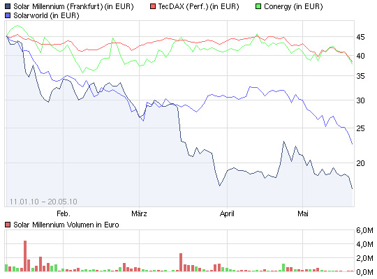 Alle Solarwerte sind derzeit börsenmäßig nicht in bester Verfassung. Solar Millennium ging es auch schon mal doppelt so gut wie heute, oder halte ich den Chart etwa falsch herum?!