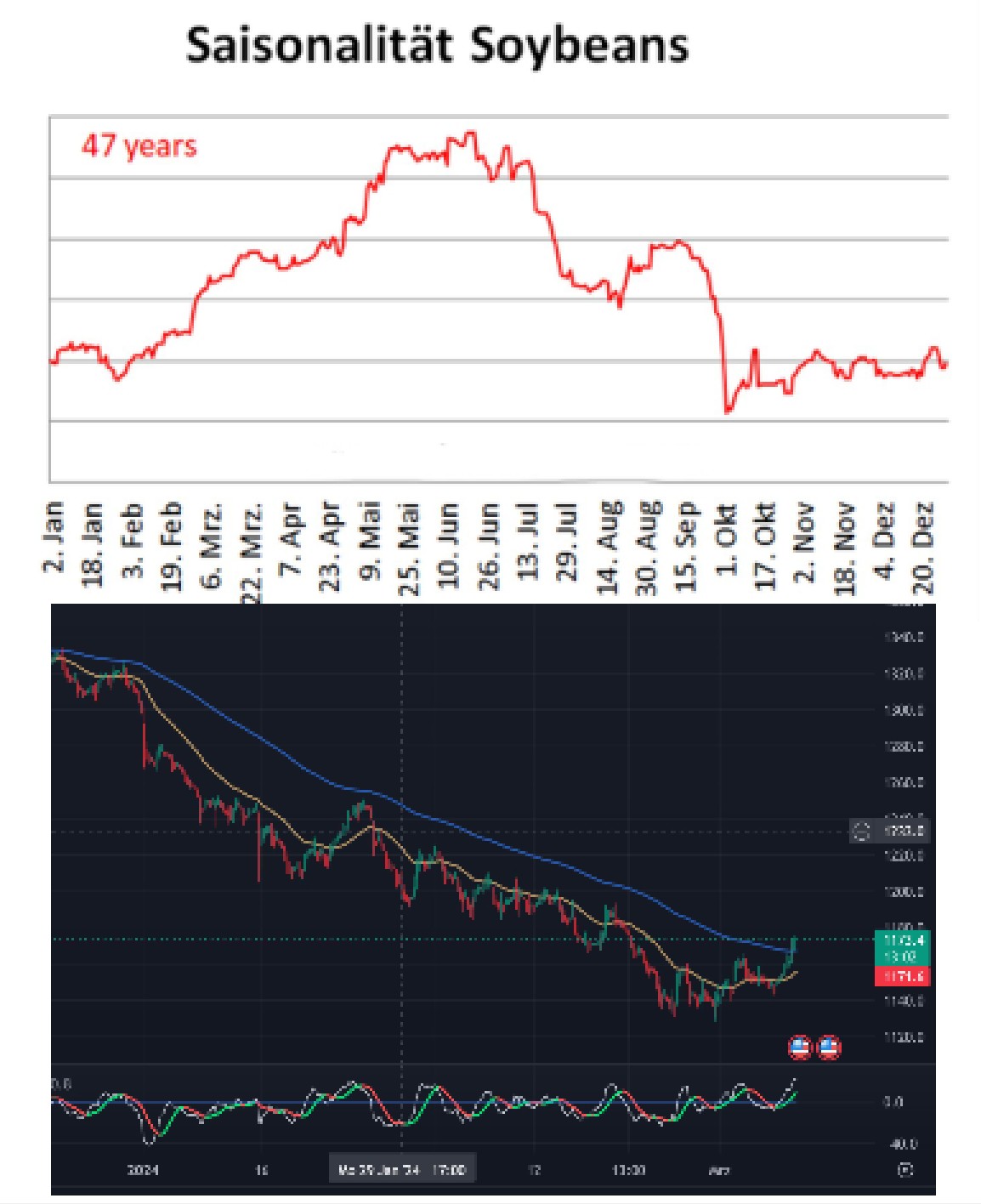 bleibt schwierig - ich bin mal rein gegangen und hoffe das der April dises Jahr das bringt was die Saisonalität verspricht. Im März wurde auch schon versucht Angebot, Nachfrage Aussichten und Phantasie zu kombinieren