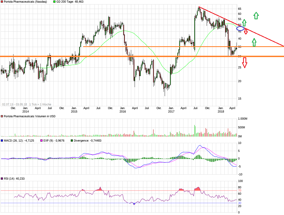 möchte ich trotzdem nochmal auf die Unterhaltung mit Kingstondown zurückkommen. Die vorläufige Ablehnung B in der EU kratzt natürlich etwas an der timeline und wenn man davon ausgeht, dass PTLA nicht gleich morgen übernommen wird und wir mit 80 Mio. shares fully diluted rechnen, dann würden Kurse von 50$ immerhin eine MKT Kap. von 4 Mrd bedeuten. Keine Frage, bei einer Übernahme, würde PTLA mehr erlösen. Nur als Orientierung....PTLA ist auch meine größte Position, aber man sollte auch immer im Hinterkopf behalten, dass hier noch etwas Wasser den Bach runterläuft, bzw runterlaufen kann, wenn PTLA es selber machen will. Trotzdem würde ich heute gerne die 50$ sehen.