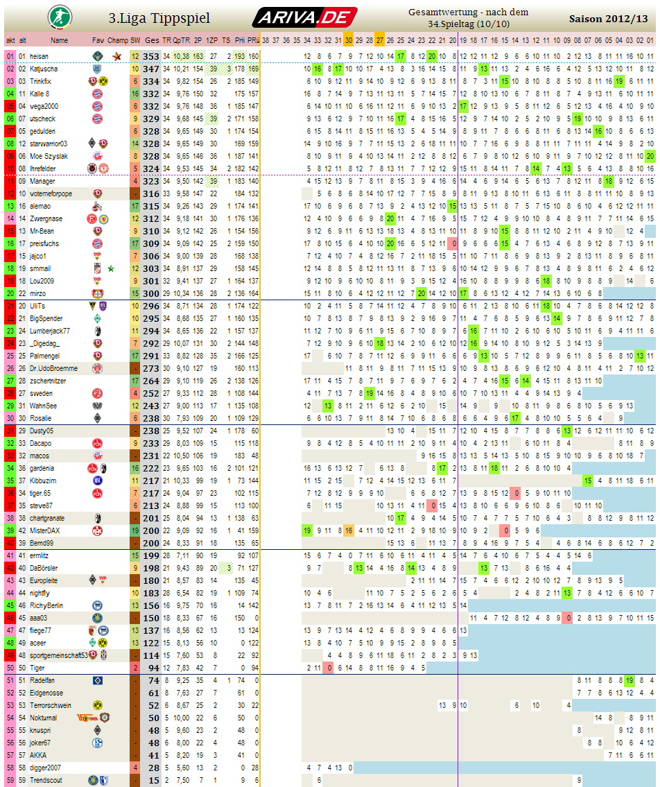 Tageswertung Spieltag 34 >> http://www.ariva.de/forum/...2-13-Spieltag-34-480655?page=2#jumppos61