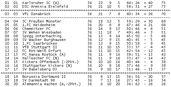 ms hat sich den aufstieg durch die juengste heimniederlage selbst versaut...echt schade...die spitzenteams um ksc, bielefeld, osna alle weggehauen, aber punkte gg untere mannschaften gelassen..ist zwar noch alles drin...auch gg babelsberg.-)...aber gross optimistisch bin ich nicht..jetzt sind wir halt auf die hilfe anderer angewiesen...glueckwunsch ksc...