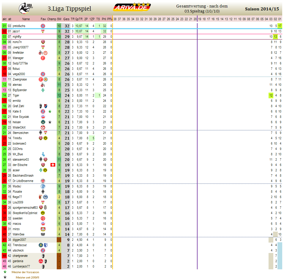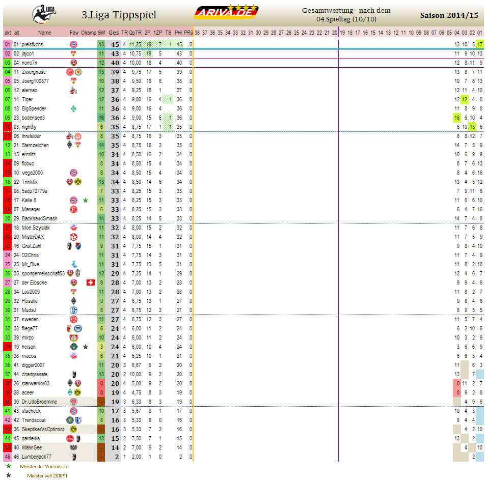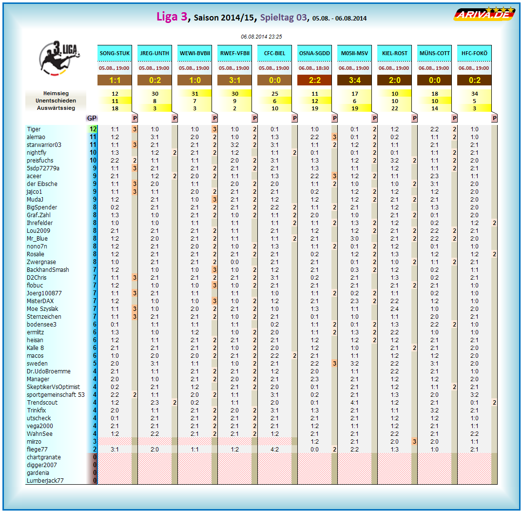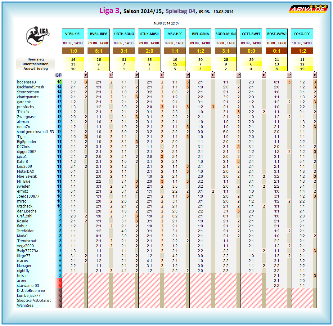 zuerst ab Dienstag Spieltag 3 >>> http://www.ariva.de/forum/3-Liga-Tippspiel-2014-15-Spieltag-03-505190
