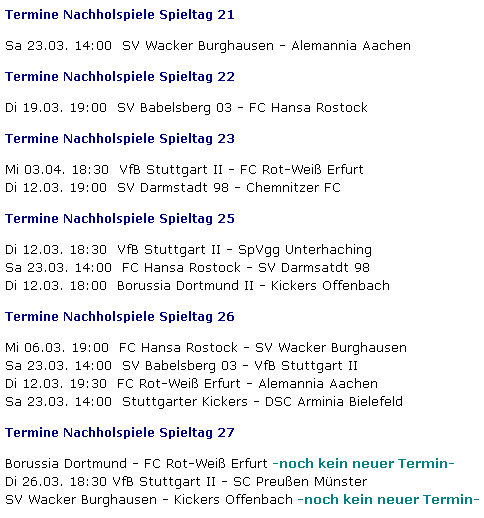 Neuterminierung Nachholspiel... 27.Spieltag...