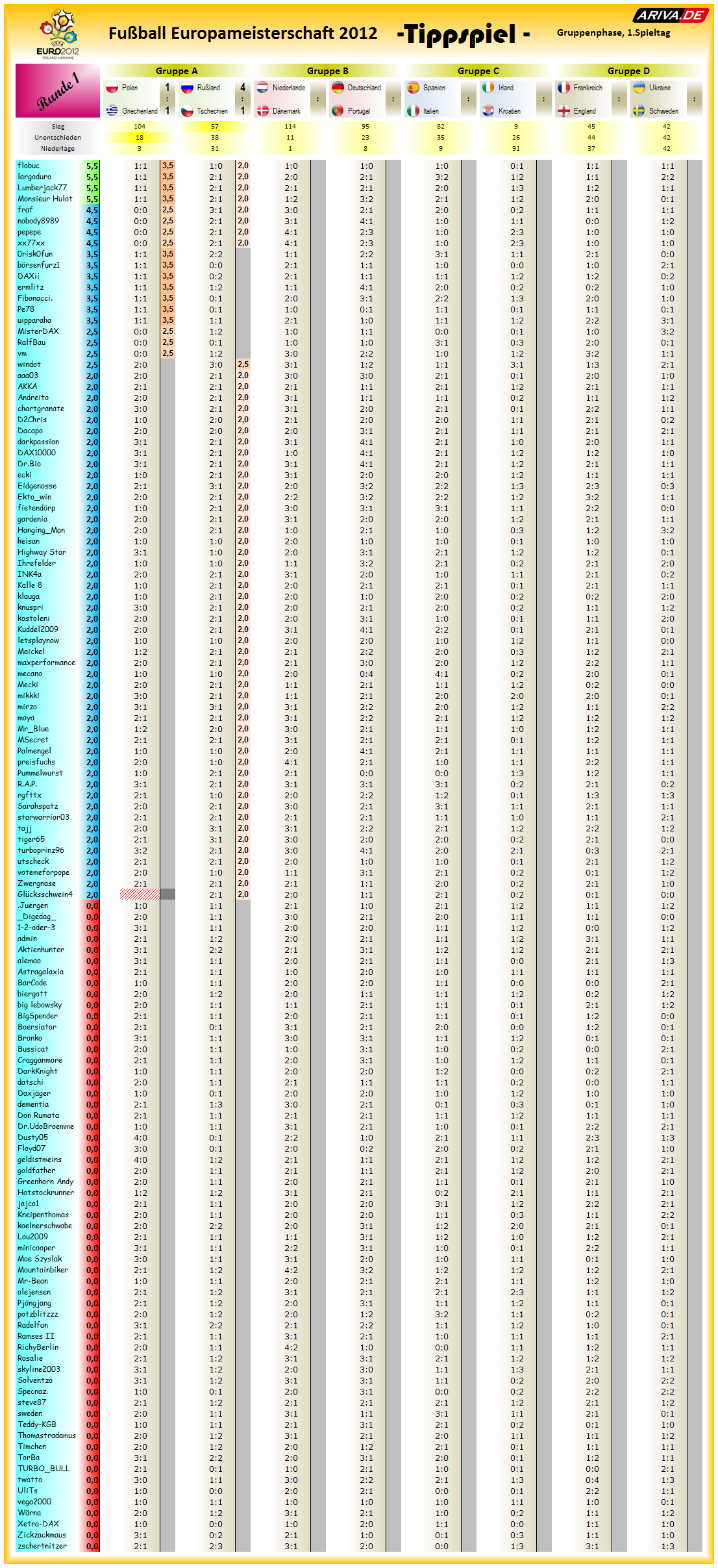 und Bär - bin Dir net bös.. sammel Kraft für de neue 1.BL TippLiga denne, für Saison 2012/13 ;o) ob Palmengel sein Titel verteidigt? Hat noch keiner geschafft.. überlegs Dir..