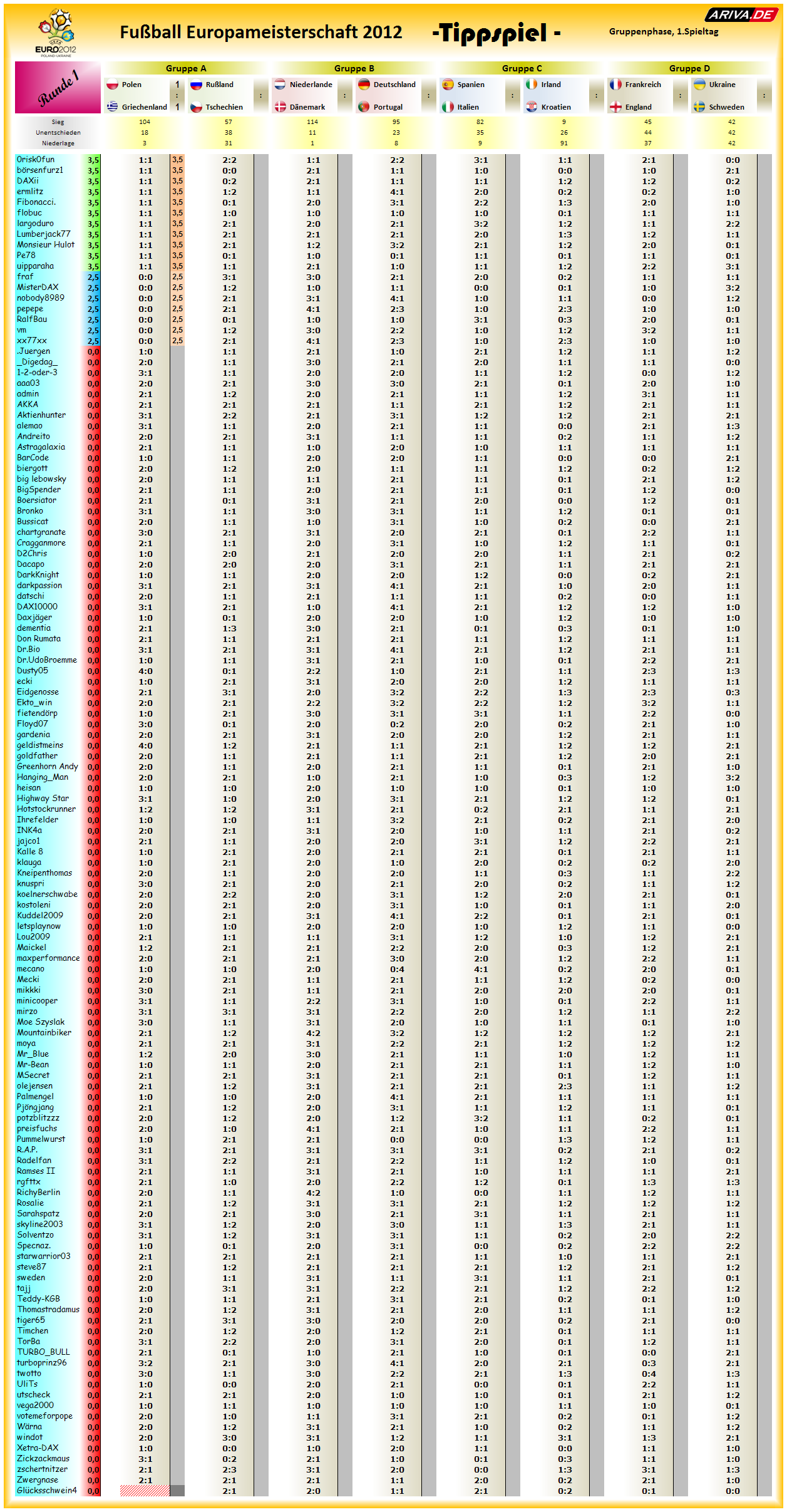 und 108 davon stehen noch bei 0 Punkten!! nur 18 Tipps gingen auf Unentschieden.... 11 davon haben exakt getroffen und liegen nun in Führung aktuell..