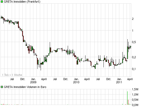 Bei Greta AG (WKN: 914717) dürfte sich nach einer Konsolidierung eine Trendwende eingeleitet haben. Aktie aus unserer Sicht bei derzeit etwas über 30 Cent klar unterbewertet. Die Höchstkurse von vergangener Woche zwischen 50 und 60 Cent sollten wieder als relativ kurzfristiges Ziel gelten.
