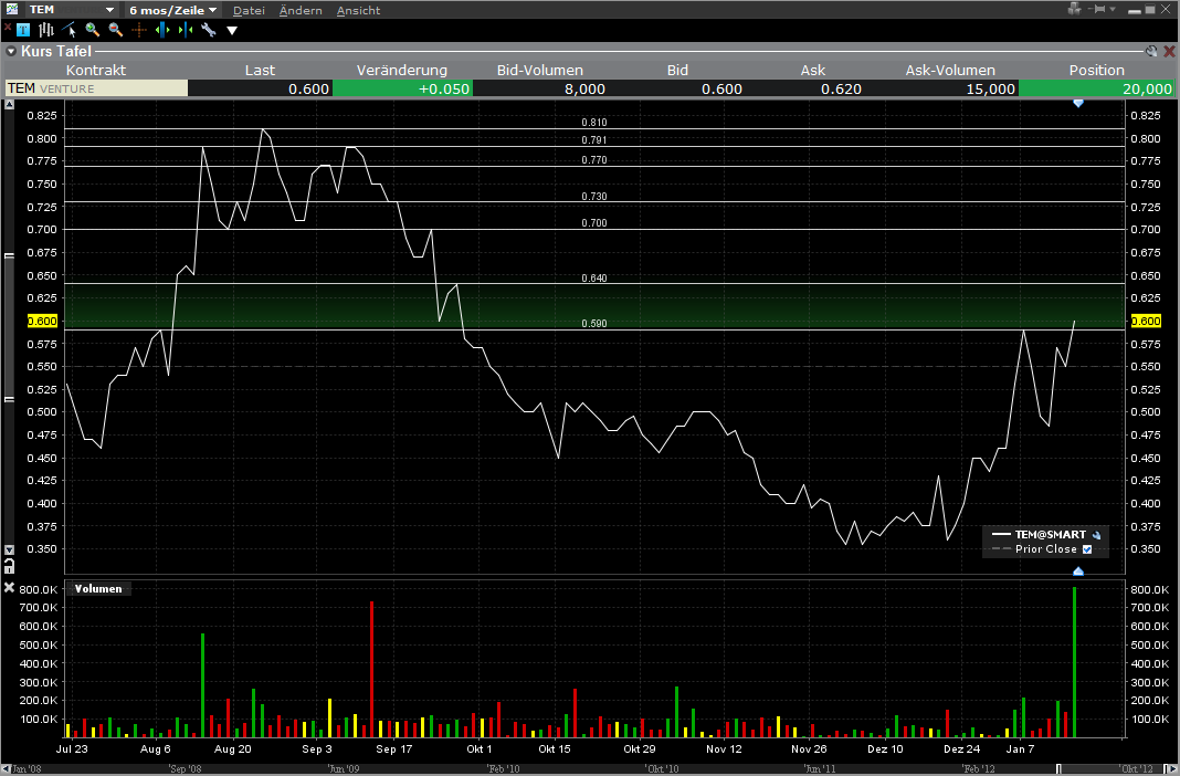 bin jetzt mit einer ersten Position mit dabei, nachdem ich etwas in diesem Thread und auf Tembo's Homepage gelesen habe. Also vor ca. 1ner Stunde ging die Seite noch auf. Sieht insgesamt (aus Laiensicht) sehr gut aus. Auch charttechnisch hat sich ein "sanfter" Aufwärtstrendkanal entwickelt, wobei noch einige Hürden (Widerstände) zu überwinden sind. Danach dann allerdings: Freie Luft in Richtung Norden!