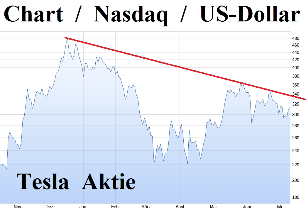 Der Chart bei der Tesla Aktie in US-Dollar schaut gleich aus.