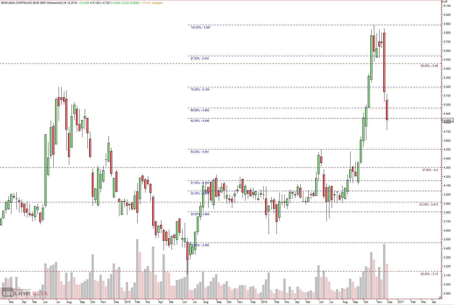 Schaue wo Hoch im Oktober gemacht wurde: über der 1/2 (braun). Eigentlich ein gutes Zeichen