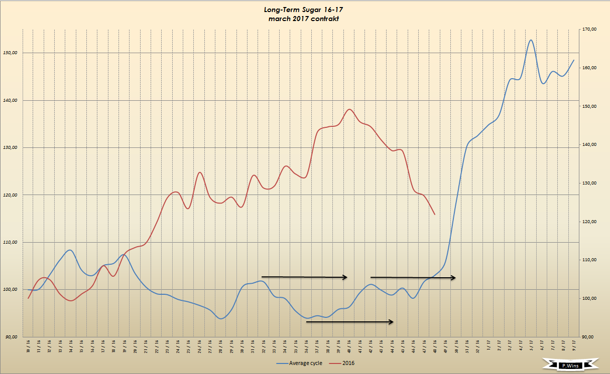 Dass Zucker bis jetzt am Steigen ist, verdanken wir den Zyklen, die Zuckerpreis zu, sagen wir Trefferquotte von 60 bis 70%, beeinflüssen.