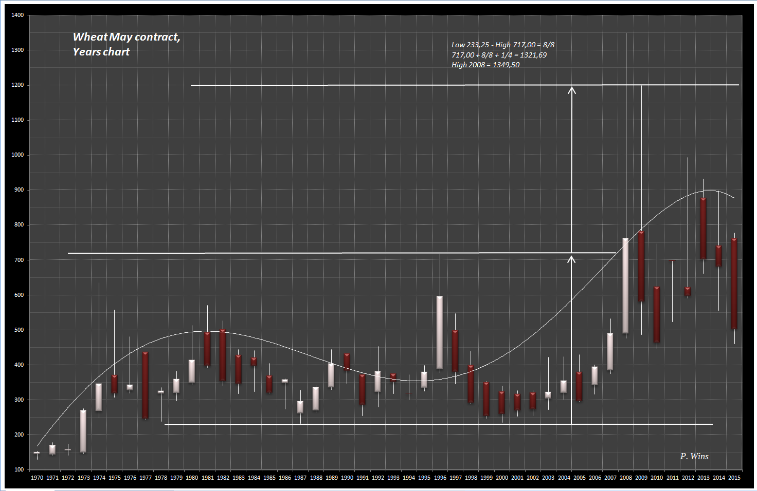 Schaut mal Chart von Weizen an. In 70er, 80er, 90er bis hin 2008 an. Tief war damals um die 230 US cent und Hoch um die 600-700.