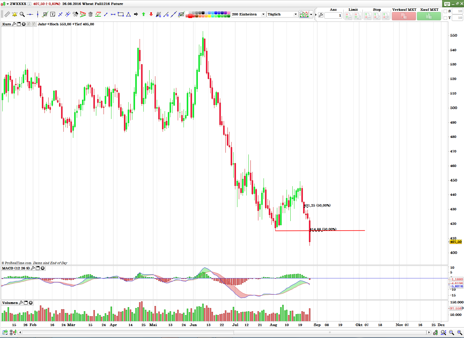 Allerdings müßte Weizen jetzt dann alsbald auf eine Unterstützung treffen mMn und die warte ich noch ab.