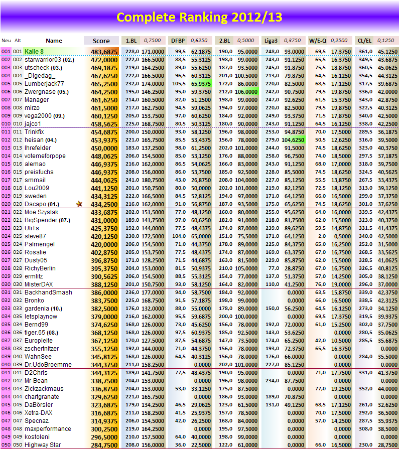 so, dann guckste mal ins Posting 1 die Gesamtwertung VOR dem Viertelfinale DFB Pokal... da hattest Du 95,5 Punkte...