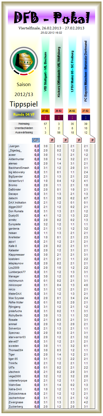 Tippspiel DFB Pokal, Saison 2012/13, Runde 4 VF