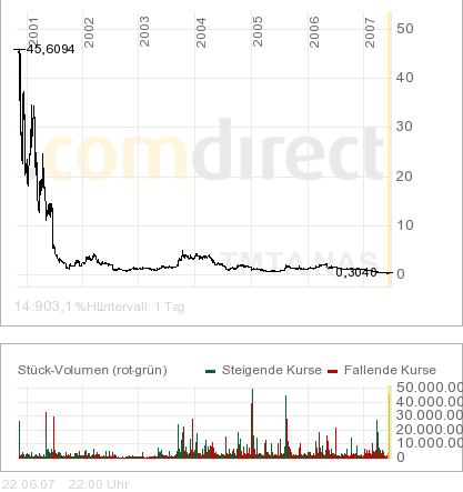 Obwohl die Aktie in den letzten Tagen um fast 80% zugelegt hat, sieht der Langfrist-Chart tödlich aus. Auf diesem Niveau ein Zockerpapier. Wem’s gefällt ….