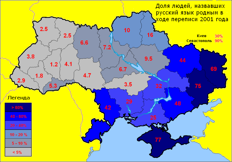 zeigt ebenfalls ziemlich deutlich, dass die russische Sprache im Osten nicht flächendeckend als Hauptsprache gilt, sondern sich in gewissen Städten Russen konzentriert haben, während es weiter auf dem Lande selbst zur Grenze hin ukrainisch ist.