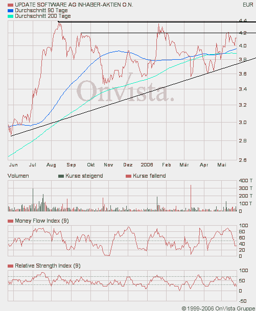charttechnisch siehts wirklich gut. die ganze abwärtssog am markt wurde voll ignoriert, die 200er wird steigen wenn die kurse vom juni 05 rausfallen, RSI straff überverkauft. kann zwar auch schnell nochmal auf 3,90 oder auch 3,80 runtergehen, aber dort gibts gute absicherungen. der ausbruch kann aber durchaus noch ein stück auf sich warten lassen, 1 oder 2 monate sind da durchaus realistisch.