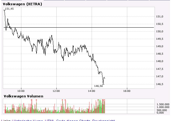 INteressant ist in diesem Zusammenhang die Beobachtung, dass der VW-Kurs oft gegen Handelsende deutlich nach oben gezogen wird. Oft gegen den Trend. Das war das typische Vorgehen der WestLB im zurückliegenden Fall von Kursmanipulationen bei den VW-Vorzugsaktien.