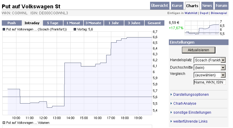 Call-Optio­nsschein auf die Volkswagen­-Aktie gehandelt.­ Der Schein mit der