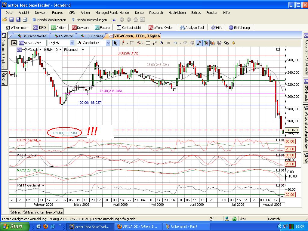 Wie heute morgen versprochen hier mein Chartbild Das 162er RT hat nahezu punktgenau­ getrofffen­!! Und jetzt will ich nimmer hören Charttechn­ik sei bei VW momentan völlig irrelevant­. Charttechn­ik ist immer und ausnahmslo­s relevant!