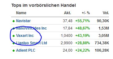 wenn VXRT heute richtung 2$ läuft , auf Stocktwits sind auch schon 14,5k watch´s