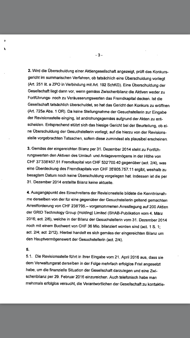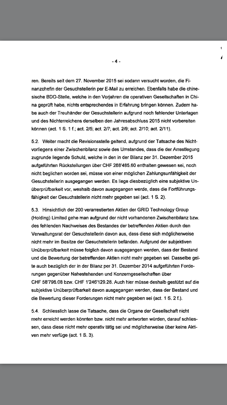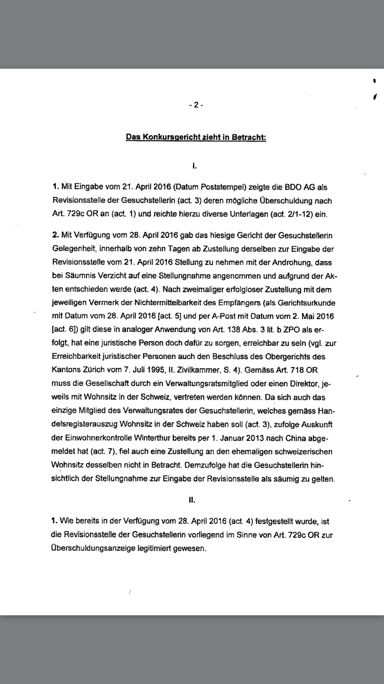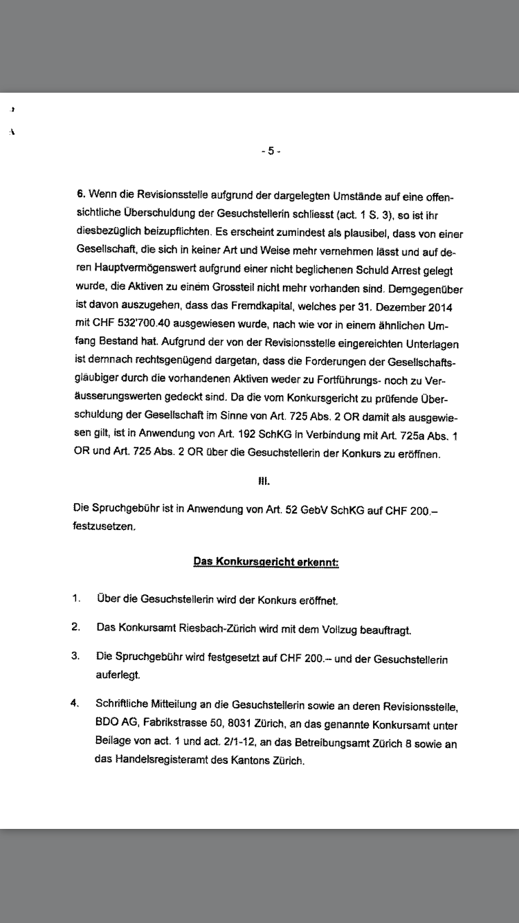 das einzig positive ist, dass der Prüfer (BDO) noch nicht zurückgetreten ist bzw. dieser ist noch im Handesregister (HR) eingetragen ist. Weiter sind 5 Aufsichtsräte (Verwaltungsräte) im HR eingetragen.