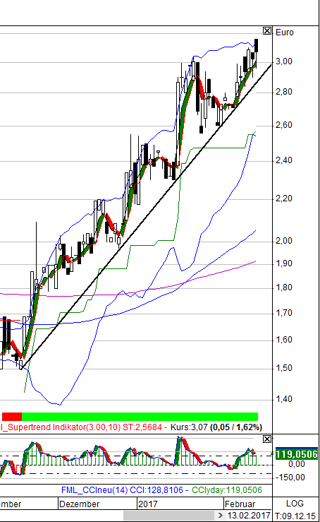Da haben wir über 50% Kursgewinne in kurzer Zeit und keinerlei Verkaufsdruck oder längere Konsolidierung. Im Gegenteil, es wird sogar noch in jede noch so kleine Kursschwäche reingekauft, so daß sich das Kursniveau am obersten Limit hält.