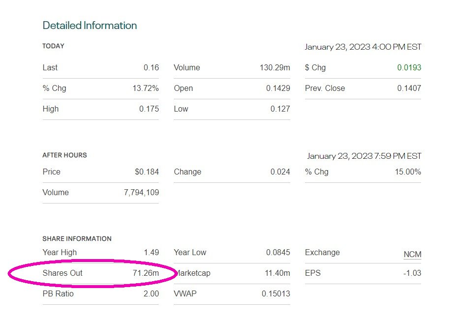 Anzahl Shares 71 Mio. direkt von der website "WiSA", ich hatte die 50+4 Mio Shares aus Ende 2022 noch nicht eingerechn­et