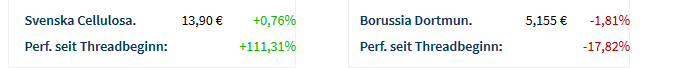 Wer weiss, wenn Dembele für ca. 150 Mio. Euro verkauft wird, könnte der BVB wieder an Svenska Cellulosa vorbeiziehen.