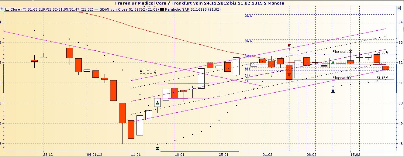 Fazit: Kein Grund zur Panik, in ein oder zwei Wochen könnte der Kurs die Trader-Range 52,38 /51,15 nach oben verlassen.