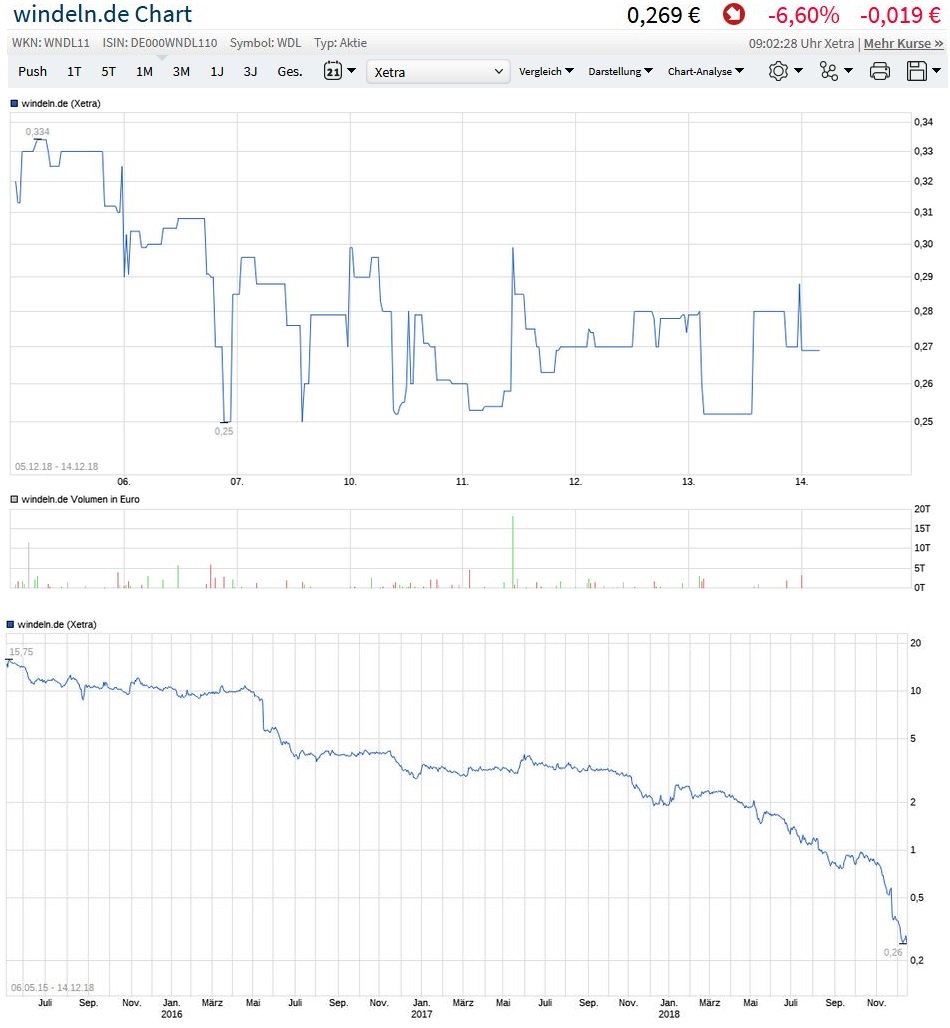 Oder erst noch auf 0,01€ fällt, um dann auf 0,02€ zu steigen? Die echten Zocker sind sowieso nicht bei so einer winzigen handelsschwachen Belanglos-Bude wie die hier, sondern die Fliegenschwärme kreisen um große Kuhfladen wie Steinhoff&Co. . Wer also zocken will, der sollte es nicht im leeren Hinterhof versuchen, sondern da wo die Zocker in Massen auf dem Hauptfeld stehen. Wenn man Kosten ernsthaft sparen will, dann sollte man bei windeln.de erstmal ein Delisting in Erwägung ziehen und die Vorstandsgehälter zehnteln (wären dann noch immer überhöht). Na mal schauen, wie es nach der Altaktionär-Rasur (Kapitalschnitt mit anschließender extrem verwässernden KE) weitergeht die mit der aoHV vollzogen wird. Wenn man 10:1 zusammenlegen will, dann sollte man möglichst vorher nicht unter 010€ fallen, da man ja neue Aktien mit einem Mindestnennwert von 1€ ausgeben muß. Aber wenn man so weiterfällt, dann wird es langsam eng.