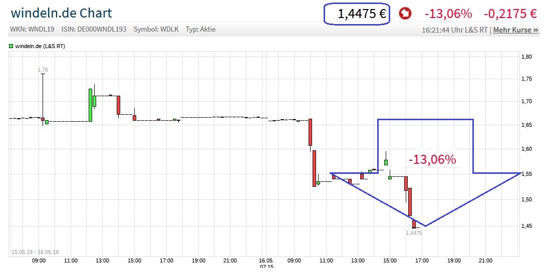 Einige Kaufempfehlungen haben tatsächlich dafür gesorgt, dass der Kurs dieser marktengen Aktie nochmal über 2 Euro zu bewegen war. Ich bleibe dennoch bei meiner Einschätzung, dass windeln.de keinen Gewinn erzielen wird, weder 2019 noch 2020 und auch nicht 2021. Das Unternehmen wird von der Bildfläche verschwinden. Entweder durch Insolvenz oder weil es nächstes Jahr zu wenigen Millionen Euro komplett aufgekauft werden kann. Alternativ kann man die freuen Aktionäre auch durch beinahe jährliche Kapitalerhöhungen ausbluten bis ihnen nur noch ein Bruchteil am "Kapital" gehört.