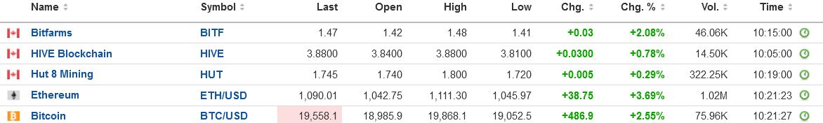 Vergleich Kanada Die Umsätze sind schwach, die Minen zeigen bisher keine relative Stärke zu Bitcoin und Ethereum