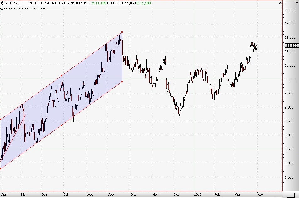 Übrigens wie wäre es denn in dem Dell-Chart nach dem ersten Trendkanal weitergegangen? Mit GD und GC jedenfalls nicht!