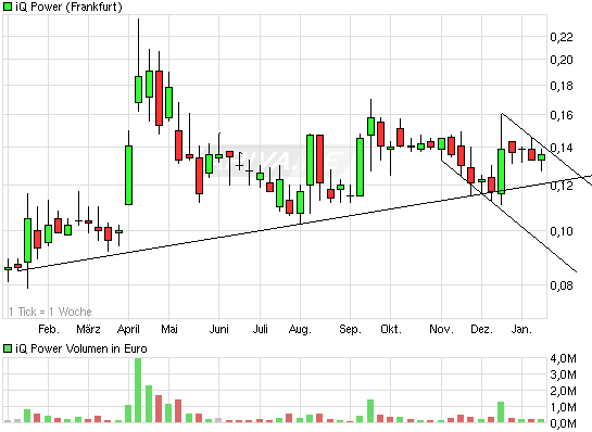 die Aktien von IQ Power sind ein so genannter Pennystock. Die Aktien notieren im Moment bei 0,135 Euro und die Risiken bei diesem Aktientitel sind derzeit sehr hoch!