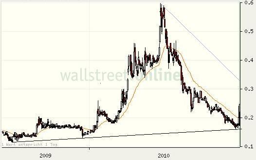 Kippt die Aktie hingegen nachhaltig unter 0,123 Euro zurück, ist sie für Longpositionen kurzfristig nicht mehr interessant. Dann kann ein erneuter Rücksetzer bis 0,112 - 0,115 oder ggf. 0,100 - 0,103 Euro folgen.
