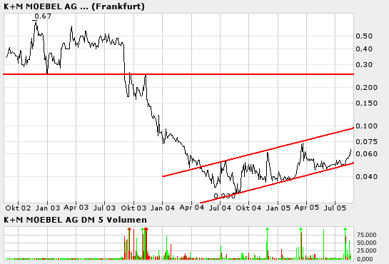 so Euro 0,08 im Ask. Jetzt wird es spannend. Ich denke erstmal wird K&M dort abprallen. Aber die fällt noch.