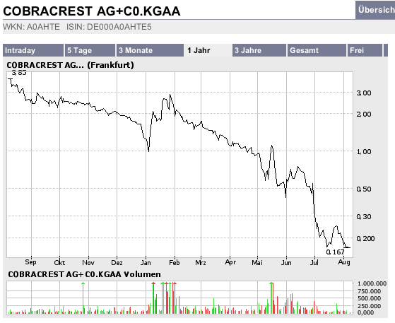 Cobra war ja auch immer eine Säule deines Depots. Du hattest ja zigtausende € invesitiert ... also bist du auch zigtausende im Minus ... es sei denn, du hast alles frei erfunden. :-)