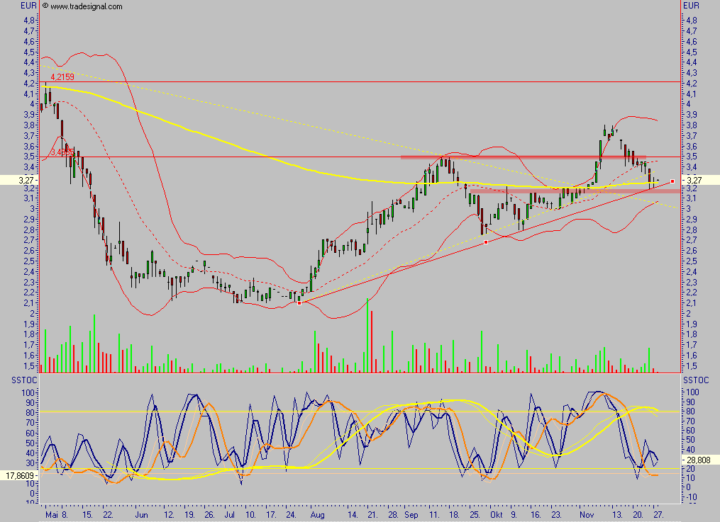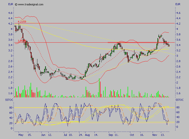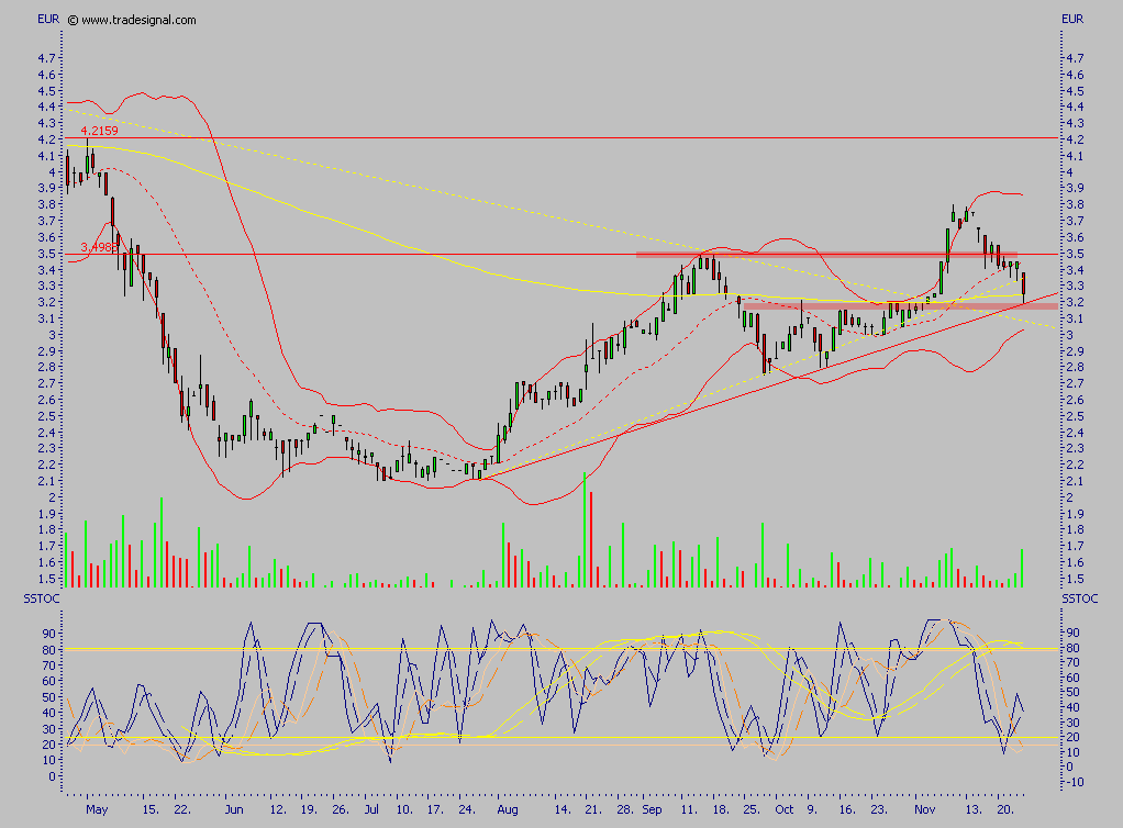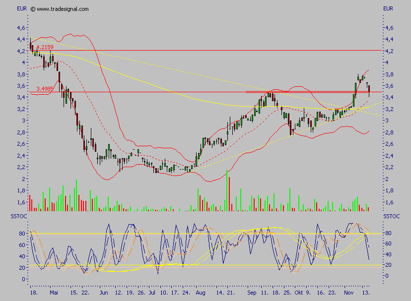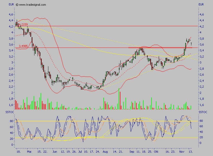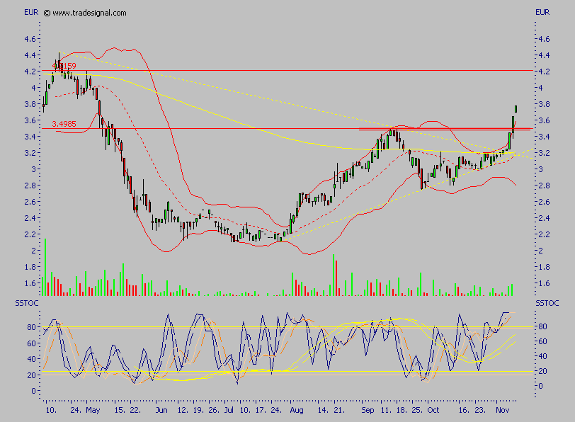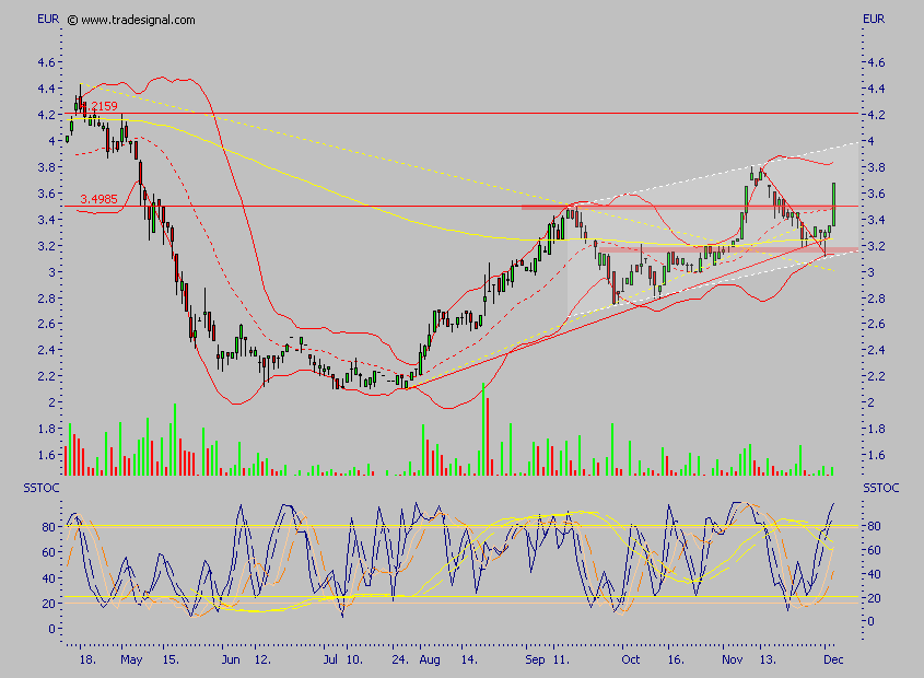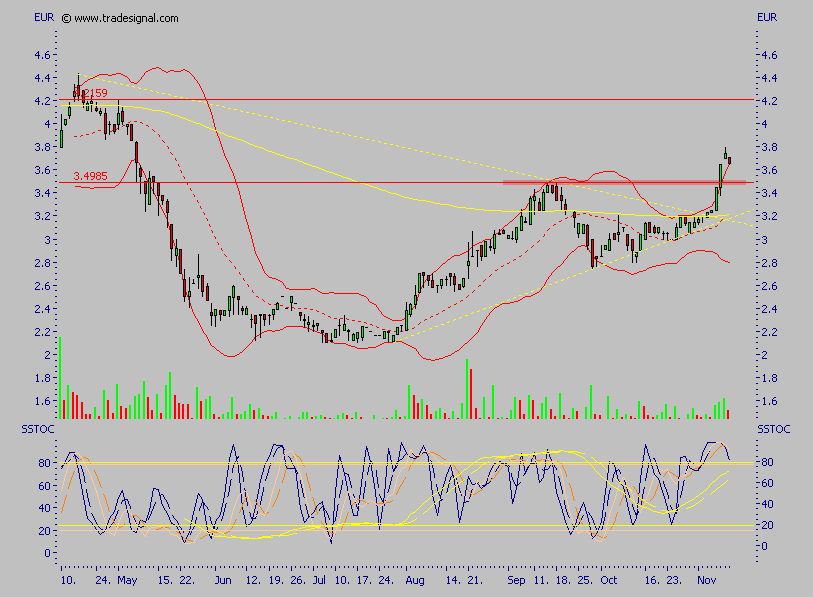 Der Wert ist heute erneut ausgebochen, allerdings ganz kurzfristig ein wenig überkauft, das nächste größere Ziel ist allerdings das alte Hoch, Rücksetzer halte ich also für kaufenswert, der Wert sollte nicht lange unter 4 € zu haben sein, so wie ich das einschätze.